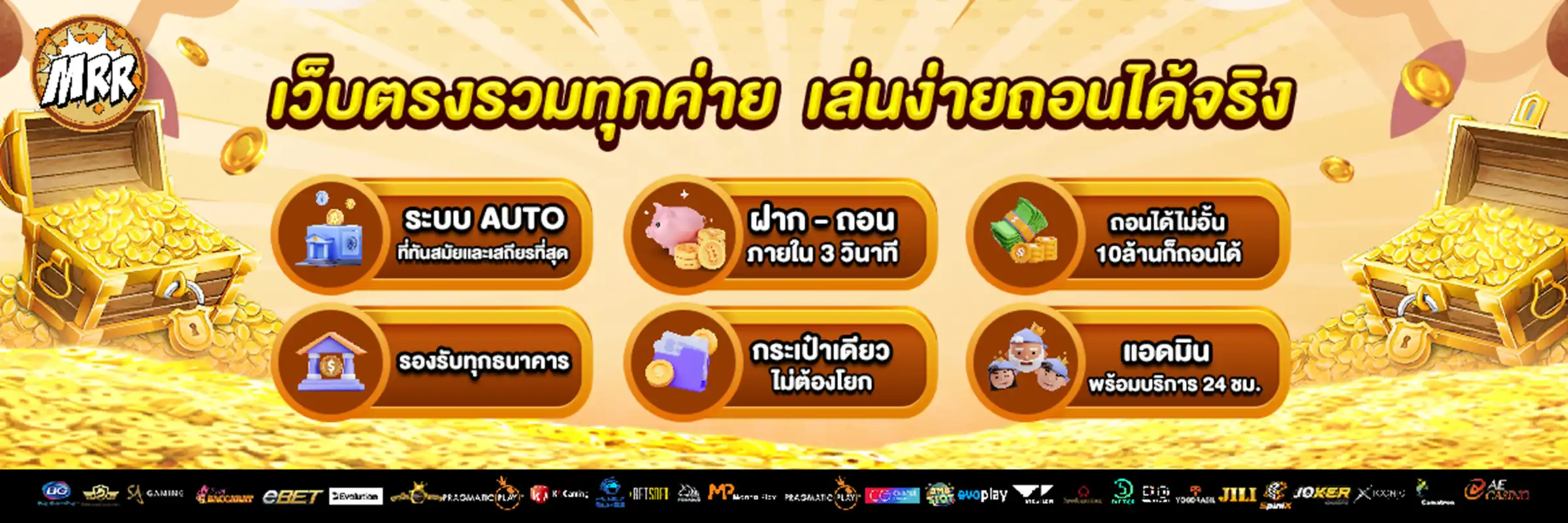 ตอบ : MRRClub มีจุดเด่นในเรื่องของระบบการเงินที่รวดเร็ว ปลอดภัย และมีโปรโมชั่นที่น่าสนใจ รวมถึงการบริการลูกค้าที่เป็นมืออาชีพตลอด 24 ชั่วโมง